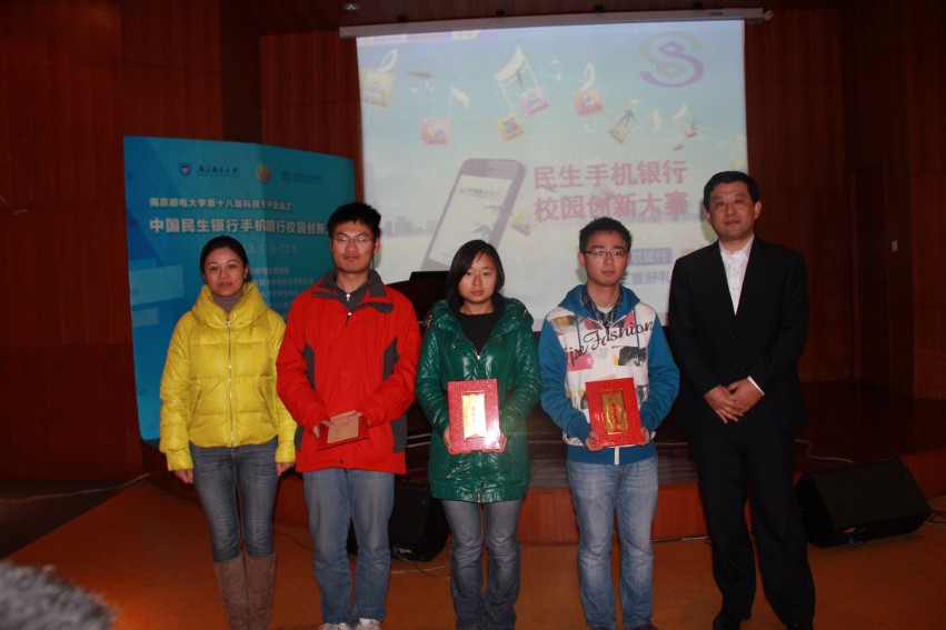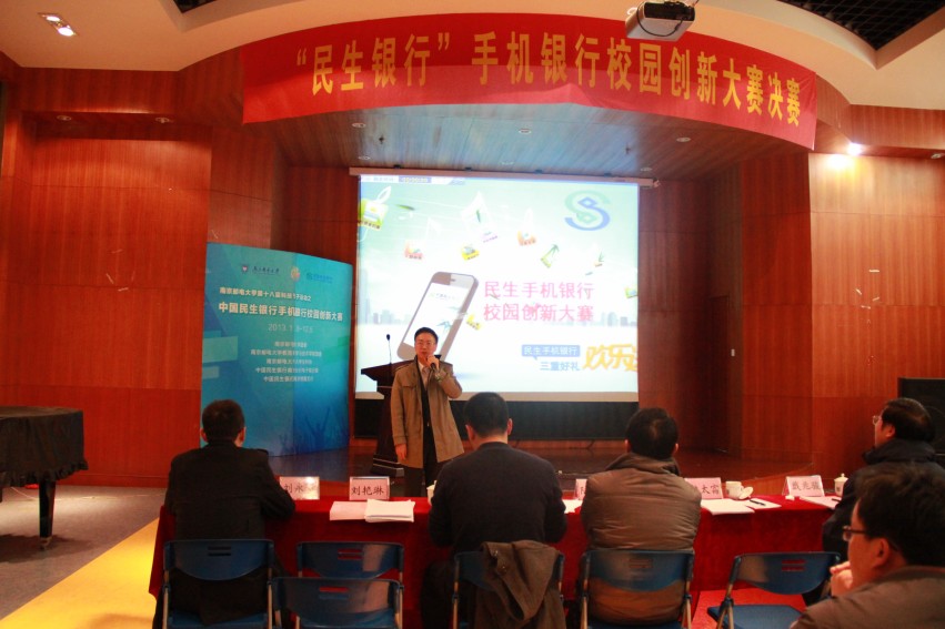 12月16日晚,由校团委主办、教育科学与技术学院团委和校科协承办的“民生银行”手机银行校园创新大赛在大学生活动中心三楼多功能厅隆重举行。民生银行南京分行电子银行部杭太富总经理、研发部姜华总经理、栖霞支行刘艳琳行长、电子银行部中心尹慧经理、我院党总支戴兆骏书记、科技处陆音副处长、校团委李晓华副书记、计算机学院季一木副教授、我院刘永贵副教授应邀出席本次活动。校科协、各学院学生代表全程观摩了比赛。