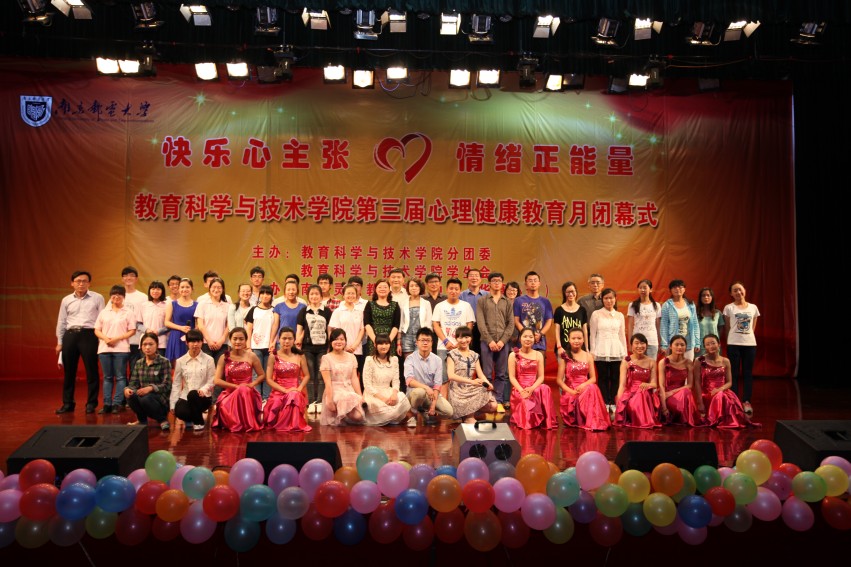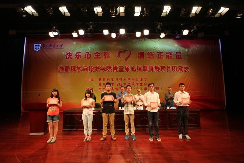 5月15日晚上,我院举办的以“快乐心主张,情绪正能量”为主题的第三届心理健康教育月闭幕式在青春剧场隆重举行。学生工作处处长孙秀成,教师教学发展中心主任兼教务处副处长沈召前,党委宣传部副部长李大伟,南京心理学会副理事长、江苏省心理学会大学生心理专业委员会副秘书长、院党总支书记戴兆骏,副院长余武、学院辅导员及全院学生参加了闭幕式,闭幕式由院党总支副书记兼副院长王小露主持。