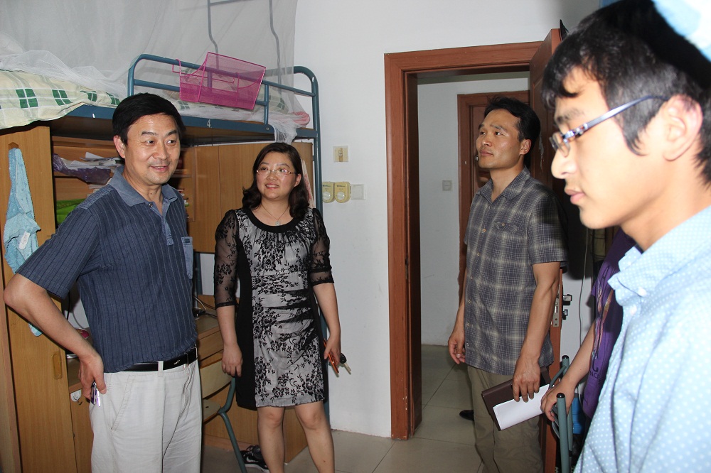 在会议开始前,沙风副处长一行走访了我院学生宿舍,在宿舍里,沙处亲切地和同学们交谈,了解学生对宿舍管理和后勤服务中的意见和建议。同时,沙处对我院的学生宿舍环境和文化氛围给予了高度的评价,也提出了希望,他希望我院的同学们能够继续保持良好的传统,一直以“红旗宿舍”和“示范宿舍”的要求严格要求自己。