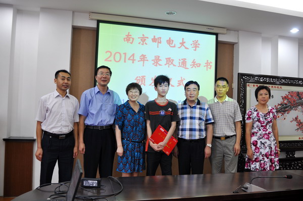许永辉同学毕业于姜堰中学,他凭着理科382分的高考成绩,被我院数字媒体技术专业录取,并获得新生特等奖学金。叶美兰副校长一见到许永辉就与他握手。许永辉同学对学校领导专程为他送录取通知书惊喜不已。“我喜欢数字媒体,我看过南邮网站上的校园360度实景漫游,很感兴趣,最终选定了学校。”这位秀气、沉稳的学生急不可待地询问叶副校长他能在大学里获得什么样的学习资源。叶副校长笑着说:“如果你喜欢泡图书馆,仙林大学城联盟都是学习的资源。”“师傅领进门,修行在个人”,叶副校长用这句话告诉许永辉大学自主学习非常重要。许永辉是一名农村考生,爸爸在外打工,身旁的妈妈希望他好好学习。叶副校长建议他“暑假里注意提升自己的综合素质,同时也要帮妈妈做点家务。”