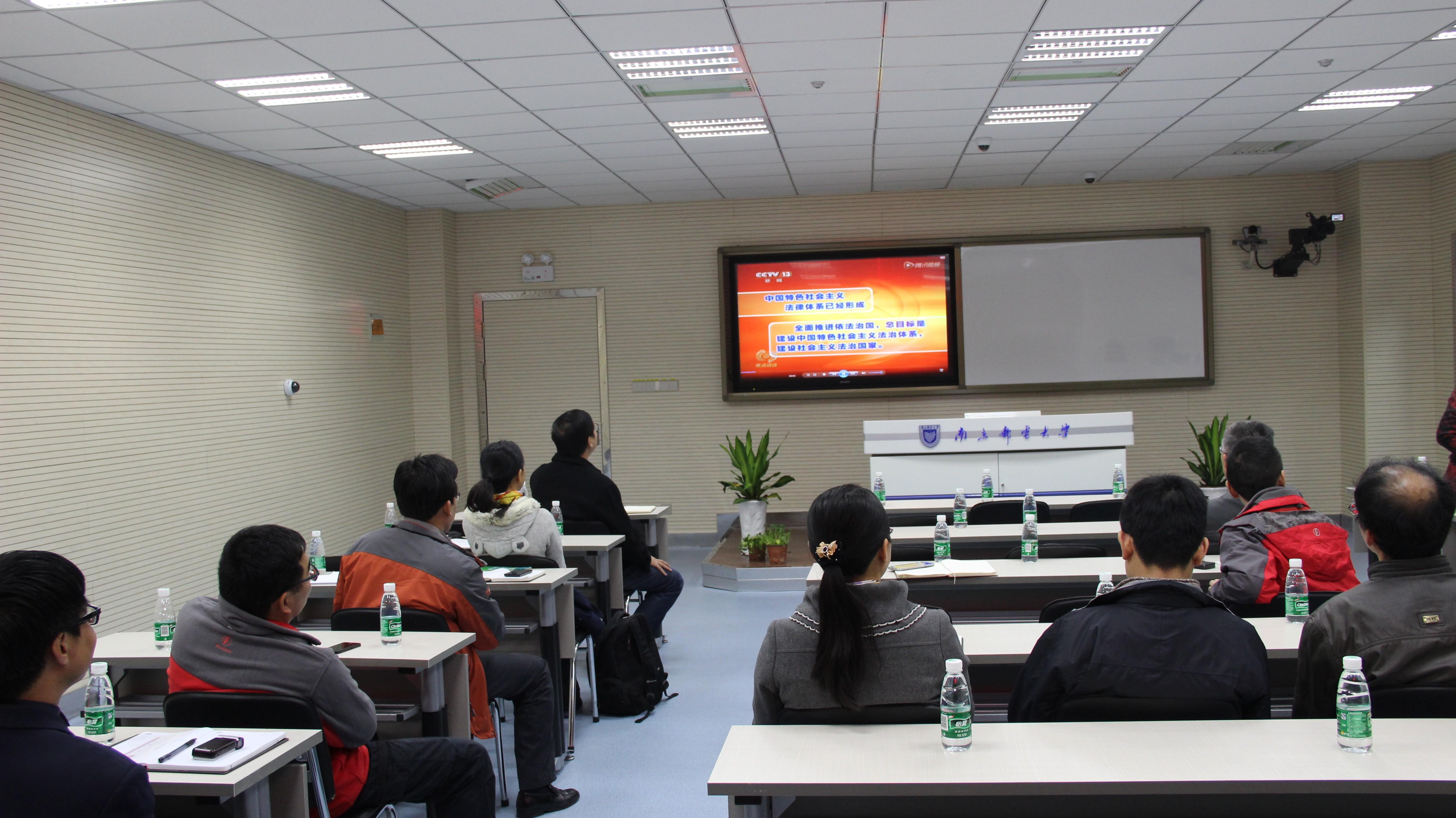 会上,戴兆骏书记组织大家联系思想实际自学《中国共产党第十八届中央委员会第四次全体会议公报》和习近平总书记重要讲话精神,并与参会人员一同观看学习了中央电视台《专家解读十八届四中全会公报亮点》和《解读中纪委十八届四次全会》相关新闻报道。