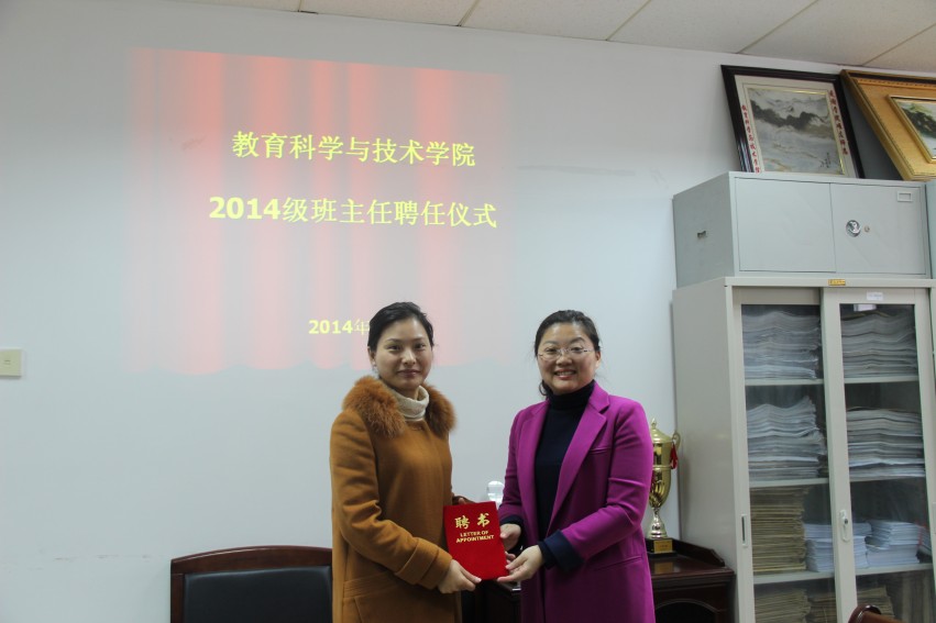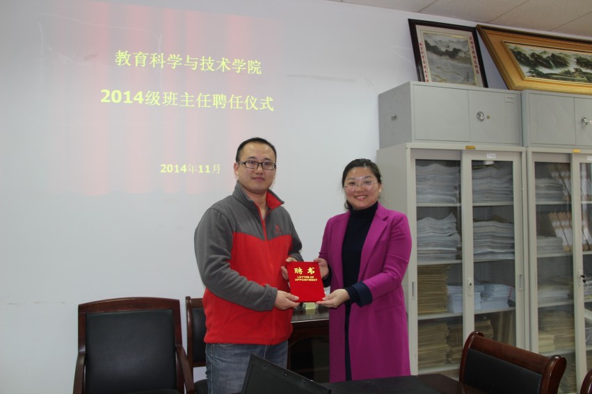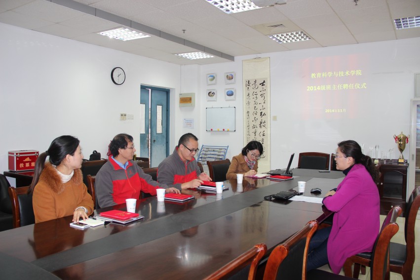 11月19日下午,我院2014级班主任聘任仪式暨工作研讨会在教4-224举行。新生班主任肖丽丽、魏建、姜玻和辅导员张超出席会议,院党总支副书记兼副院长王小露主持会议。