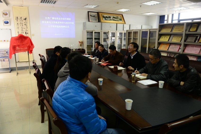 11月26日中午,我院与江苏省广播电视总台综艺频道数字媒体技术人才培养基地揭牌仪式在学院会议室举行。江苏省广播电视总台综艺频道陈素芹主任及有关领导、院党总支书记戴兆骏、副院长刘峰、副院长余武、副书记兼副院长王小露、院长助理吴伟敏、分团委书记张建波出席揭牌仪式。仪式由戴兆骏书记主持。