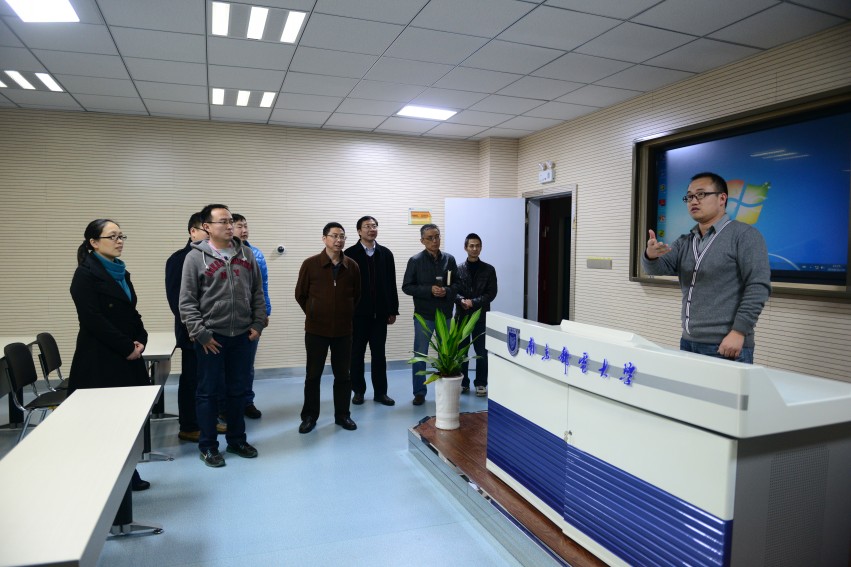仪式结束后,在院领导陪同下,陈主任等一行参观了现代教育技术中心高清录播教室、虚拟演播室,并合影留念。