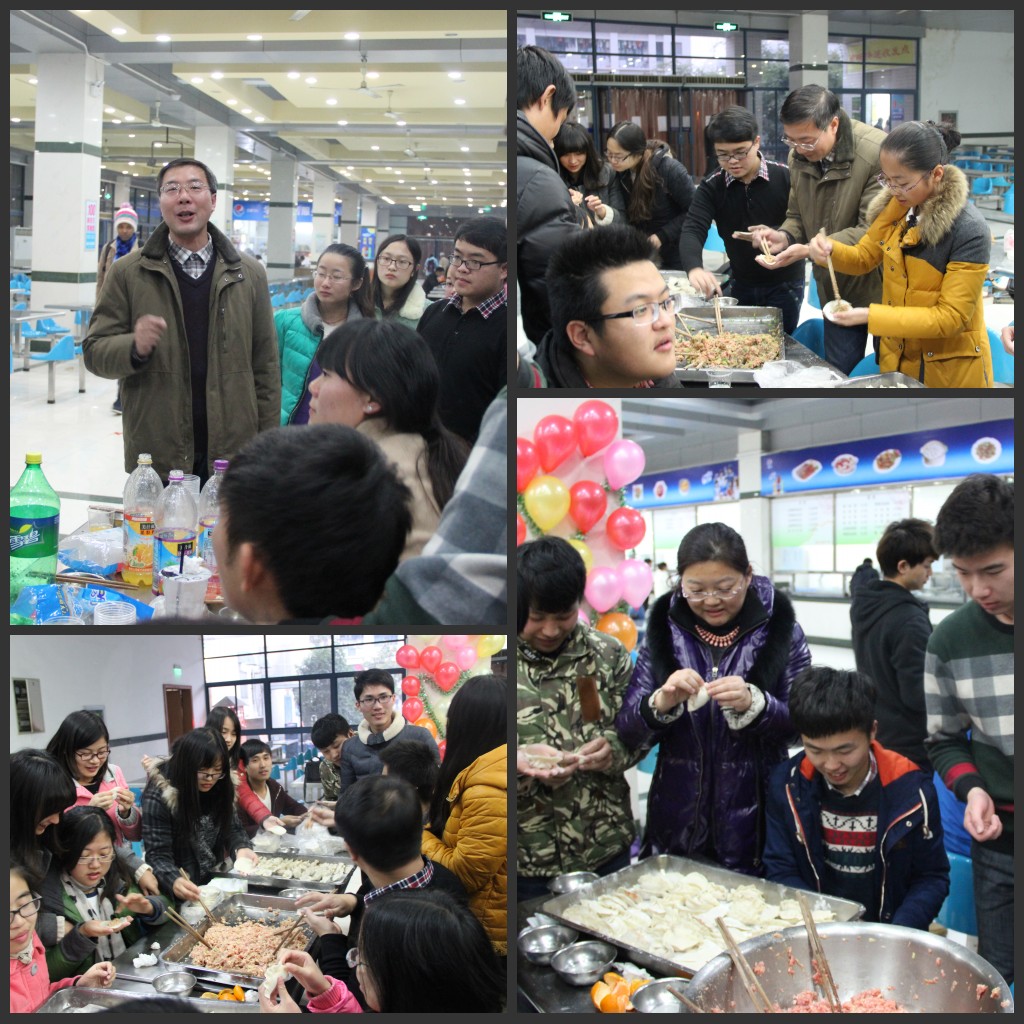 活动伊始,大家一起用气球、拉花精心装饰了活动场地。在饺子的原材料准备好之后,大家都兴奋起来,在场的同学积极行动,不断变换出新花样,欢声笑语不断,大家脸上洋溢着满满的幸福感。期间戴书记和王书记也加入进来,和大家一起动手包饺子。两位领导不时和同学们交流,向大家表达了亲切的问候,还耐心询问着学习和生活状况。就在这愉快、温馨的氛围中,饺子煮好了,同学们蜂拥而上,王书记亲切地为每位同学盛饺子,不停地叮嘱大家要多吃点。戴书记在总结讲话中充分肯定了过去一年我院学生社团干部的表现,并鼓励大家要好好复习,争取在期末考试中有更好的表现。