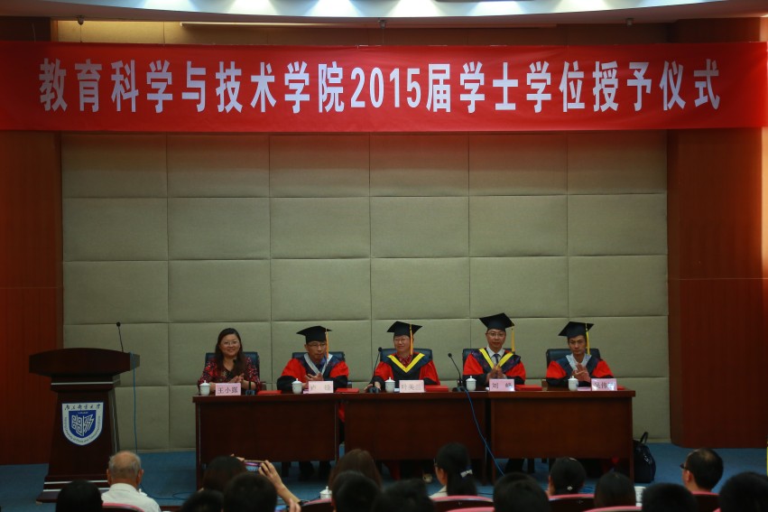 王小露副书记宣读《关于表彰教育科学与技术学院2015届优秀毕业生的决定》,对在校期间涌现出的一大批积极上进、学习成绩优秀、专业素质较强、身心素养良好的2015届优秀毕业生进行表彰。