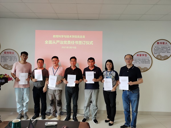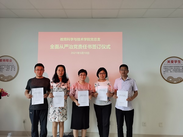 随后,彭洋书记与刘峰院长签到了《教育科学与技术学院2021年全面从严治党责任书》;彭书记与其他班子成员签订《教育科学与技术学院2021年全面从严治党责任书》;彭书记与党支部书记签订了《教育科学与技术学院2021年全面从严治党责任书》;学院领导班子成员与各系、中心党员负责人签订了教育科学与技术学院2021年全面从严治党责任书》,非党员负责人签订了《教育科学与技术学院2021年廉政责任书》。做到责任落实到位,承诺履行到位。