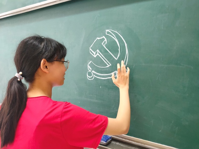 除了精彩纷呈的红色书籍读后感分享,“放飞梦想,展望未来”党史知识抢答环节也是妙趣横生,同学用思想的火花碰撞出美丽的花朵。在抢答环节中,主持人通过从“四史学习”中收集到的历史题目随机抽问,同学们积极抢答,展示了同学们渊博的历史知识。接下来的党史知识学习环节,王柯雅同学分享并演唱歌曲《我和我的祖国》,钱嘉同学在黑板上绘出党徽的标志。同学们在此次活动中增进感情,形成思想碰撞,从聆听他人想法中汲取知识,提升自我。