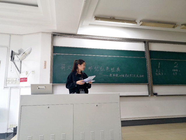 活动伊始,主持人杨绵绵同学以书籍名言引入主题。接着,阅读了《中国共产党创立之路》、《红星照耀中国》、《邓小平文集》、《毛泽东年谱》等红色书籍的同学分别分享读后感。首先上台的吴坚同学分享了《星星之火》中当时红军深陷包围圈时中共中央采取的明智举动,让我们对这段历史有了更深刻的理解。伴随着经典的革命歌曲《十送红军》,付夏芮同学带大家深入理解了《中国共产党创立之路》中中国共产党发展的曲折及革命先烈们热爱祖国的精神。随后,吴昭瑾同学分享了《毛泽东选集》读后感,她简要概述了选集中毛泽东就当时实事发表的讲话提出的重要思想,大家一致认为这本书值得阅读。