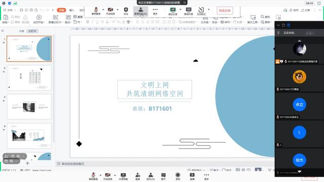 为全面贯彻落实全国教育大会会议精神,引导大学生文明上网,争做清朗网络空间的共建者、共享者,共同营造健康向上的校园网络环境,我院2017级、2018级、2019级、2020级四个年级16个团支部于4月15日至5月10日期间,围绕文明上网、共筑清朗网络空间分别展开了主题班会。此次主题班会旨在教育和引导同学健康上网、文明上网、安全上网,积极追求安全健康的网络新生活,维护网络文明,养成文明上网的好习惯,提升网络文明素养,以实际行动共筑清朗网络空间。