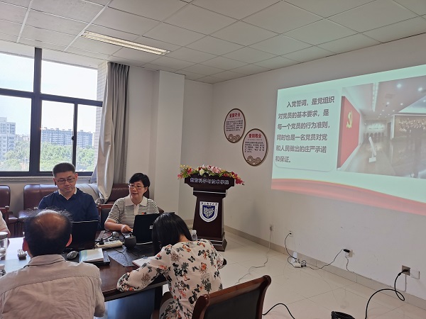 彭书记分别从建党初期时期、红军时期、抗日战争时期、解放战争时期、新中国成立、党的十二大等六个阶段阐述了入党誓词的由来。彭书记声情并茂地讲述,使学院教工党员了解了每段时期的历史背景和誓词变化。彭书记指出,入党誓词的演变反映了我们党从不放松党的建设,反映了我们党善于把握不同历史时期的主题和要求发展党员,反映了我们党高度重视对党员进行党性教育和信念教育,反映了我们党具有与时俱进的先进性。我们党员应自觉用党章规范自己的一言一行,在任何情况下都要做到政治信仰不变、政治立场不移、政治方向不偏。不论担任何种职务、从事何种工作,首先要牢记自己是一名在党旗下宣过誓的共产党员,要用入党誓词约束和规范自己的言行,做一名脚踏实地的合格党员。