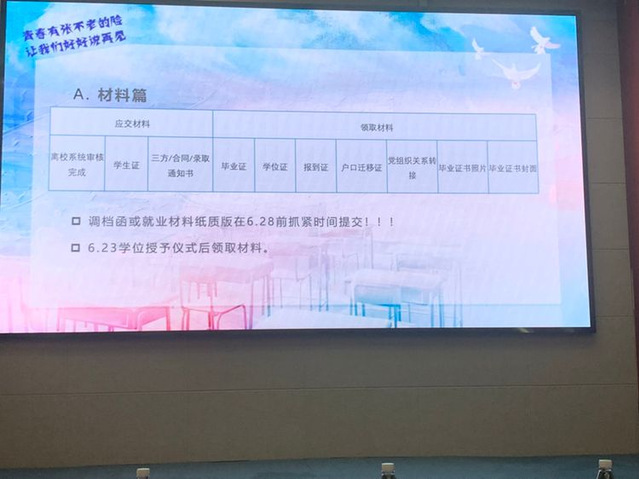 通过本次毕业生文明离校大会,同学们了解了毕业离校的手续流程,为四年大学生活画上了圆满的句号,为实现自己的梦想而努力奋斗,以自信满满的姿态迎接即将开启的新征程,以梦为马,不负韶华。