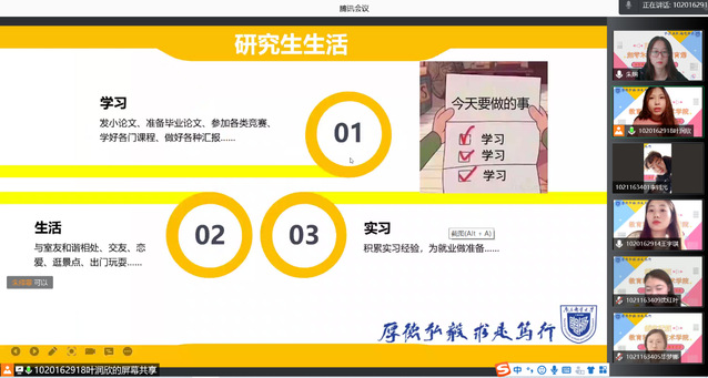 为加强研究生学术交流,拓展研究生学术视野,解答2021级新生入学后在学习等方面的困惑,2021年9月8日,教育科学与技术学院特举办2021级研究生入学教育系列活动之“研学行思,扬帆起航”主题活动。受疫情影响,整场活动通过线上会议的形式展开。我院研究生辅导员张超老师、研究生会全体成员及2021级研究生全员参加此次活动。