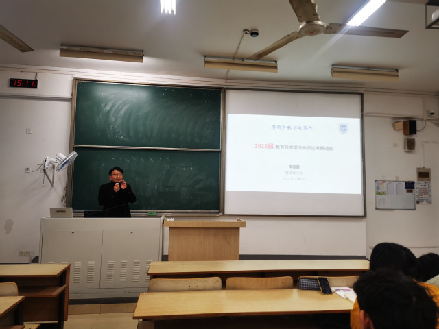 大会伊始,程薇老师从教育心理学为切入点,分析了同学们的考研动机。随后,程老师从考研时间线、专业选择、院校选择、考研资料查找、专业课与公共课的复习、备考期间的自我调节以及对于复试的准备进行了讲解。接下来,单俊豪老师以自己的求学经历,为大家讲解了当前考研形式、地区和院校选择、教育技术学的发展前景、主要研究方向等。最后,在Q&A环节,同学们针对考研相关问题积极提问,两位老师都逐一耐心解答。
