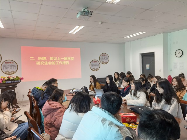 首先,大会听取了院研究生会工作报告,报告总结回顾了过去一年研究生会在思想教育、队伍建设、文化发展、研究生综合素质提升等方面取得的成绩和进步,我院研究生会不仅组织了鼓楼特教志愿服务、劳动教育等实践活动,还举办了研究生心理健康节系列活动等特色活动。同时,报告从加强思想引领、凸出服务师生、深化组织改革等方面提出今后的工作目标和计划,表达了对未来研究生会工作的展望和殷切期盼。