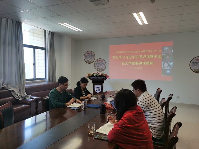 5月4日,我院党总支理论学习中心组在文科楼426会议室,通过线上与线下相结合的形式,专题学习习近平总书记在中国人民大学考察时的重要讲话精神,会议由党总支书记彭洋主持,学院理论学习中心组成员参加。