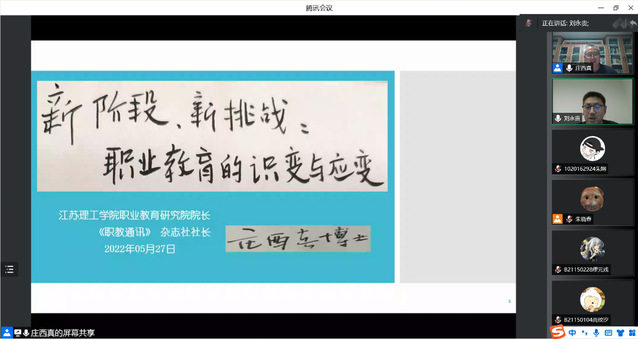 5月27日,为庆祝南京邮电大学办学80周年,教育科学与技术学院特邀江苏理工学院职业教育研究院院长、二级教授、《职教通讯》杂志社社长庄西真博士做题为“新阶段,新挑战:职业教育的识变与应变”的学术报告,报告会由教育科学与技术学院刘永贵副院长主持,我院师生近300人参加。