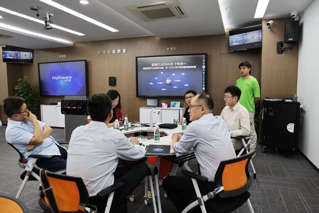 随后,与会人员参观体验了企业核心产品的成效,详细了解了电子教室、语言实验室、录播系统、视频服务系统等教育软件与硬件产品的功能、特性、优势、定位等,双方就人才需求、生产实训、产品研发及应用等方面进行了深入交流。