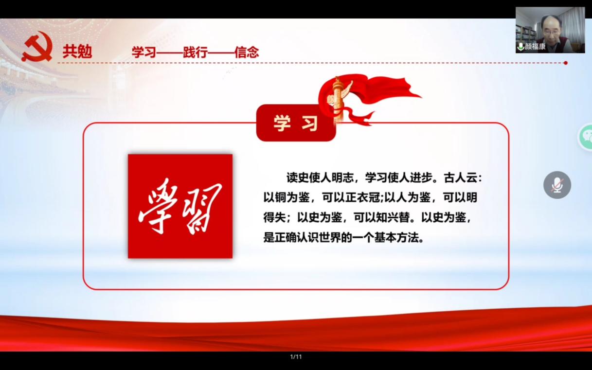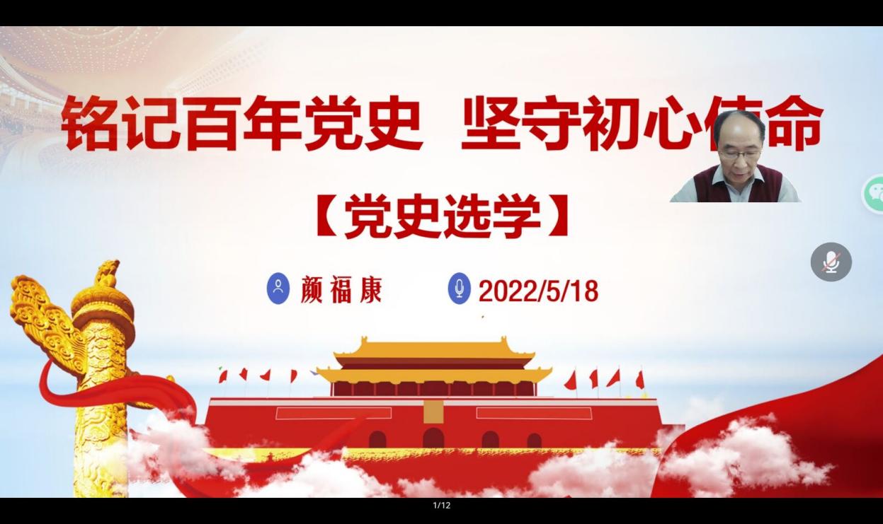 为推动党史学习教育扎实开展,继承爱国为民、艰苦奋斗的优良传统,弘扬坚韧不拔、真抓实干的奋斗精神,2022年5月18日,教育科学与技术学院第111期大学生菁英人才学校培训班第四次课程“铭记百年党史,坚守初心使命”于线上展开。本次课程邀请校关工委、校史编委会编委颜福康老师担任主讲。