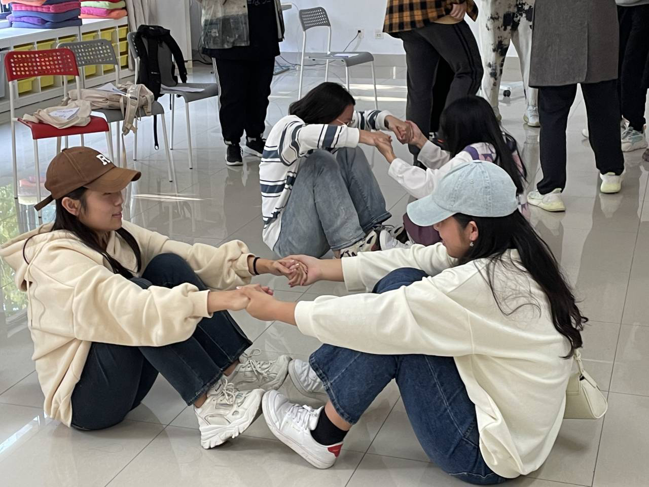 最后的活动环节,同学们齐心协力完成了“坐地起身”的游戏,在合作的过程中进一步加强了彼此的感情连接。