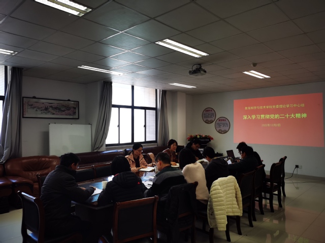 12月2日,教育科学与技术学院党委理论学习中心组在文科楼426会议室专题深入学习贯彻党的二十大精神,校党委常委、总会计师姜小舜,发展规划处处长兼高等教育研究所所长胡纵宇带领校巡学旁听第五组成员莅会指导。学院党委书记、党委理论学习中心组组长彭洋主持会议,学院党委理论学习中心组成员参加学习会。