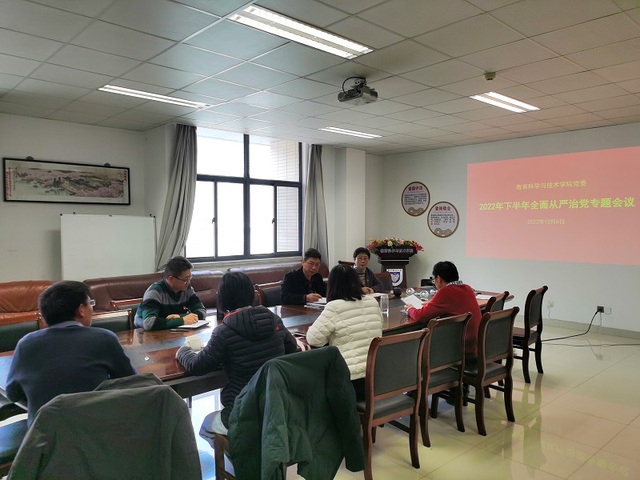 为深入学习贯彻党的二十大精神,认真落实全面从严治党工作向纵深发展,12月6日,学院党委在文科楼426会议室组织召开2022年度下半年全面从严治党专题会暨党风廉政建设工作会,会议由党委书记彭洋主持,学院党委委员参加会议,特邀监察员、党风联络员列席会议。