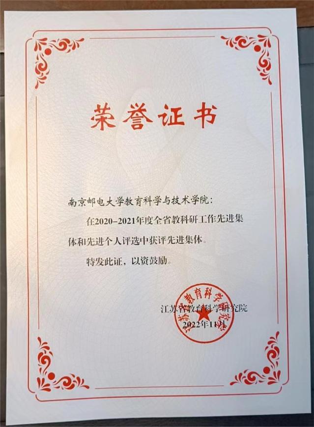 近日,江苏省教育科学研究院公布“2020-2021年度全省教科研工作先进集体和先进个人”评选结果。今年全省共有15家本科院校单位获评先进集体。我院获全省教科研工作先进集体。