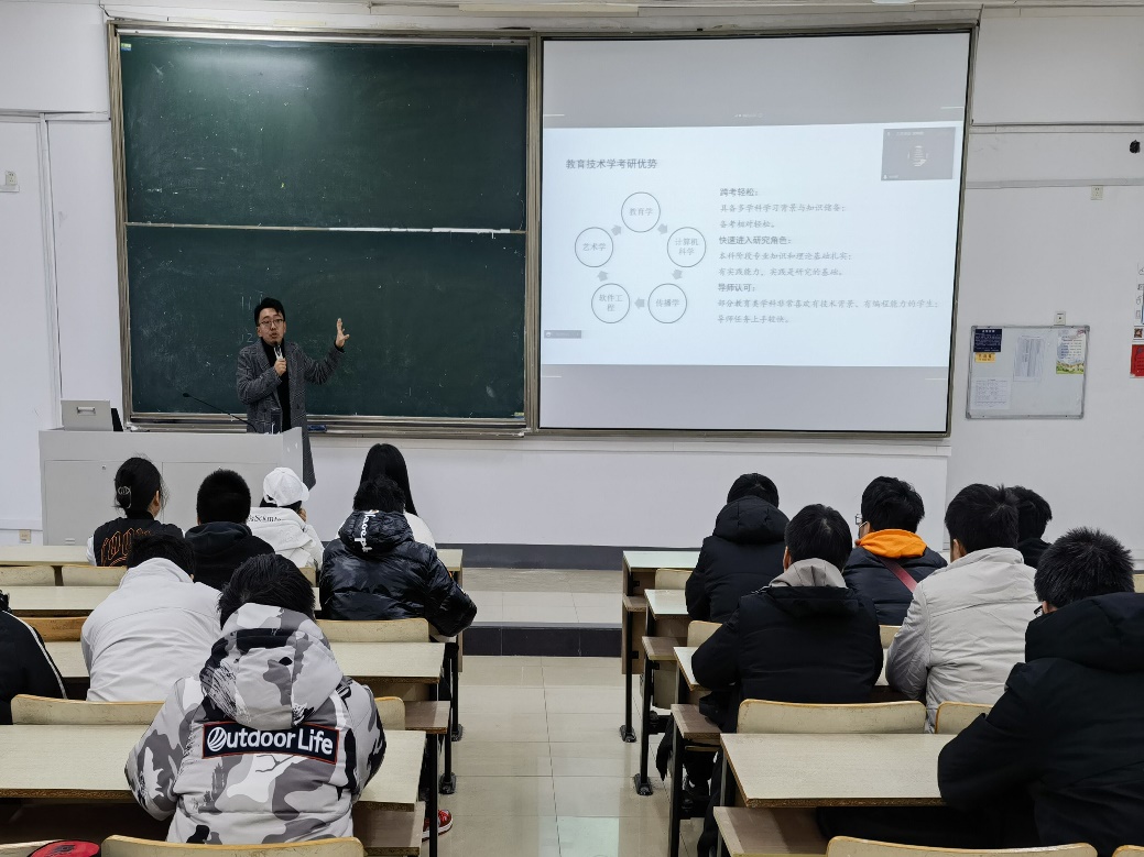 为帮助同学们理清学业规划思路,明确专业发展方向,2月17日下午,教育科学与技术学院在教2-212教室召开教育技术学学业规划指导大会。本次会议由学院副院长张刚要教授主持,学院党委副书记、副院长张力、辅导员吴美萱、教育技术系青年教师单俊豪及全体2021级教育技术学本科生参会。