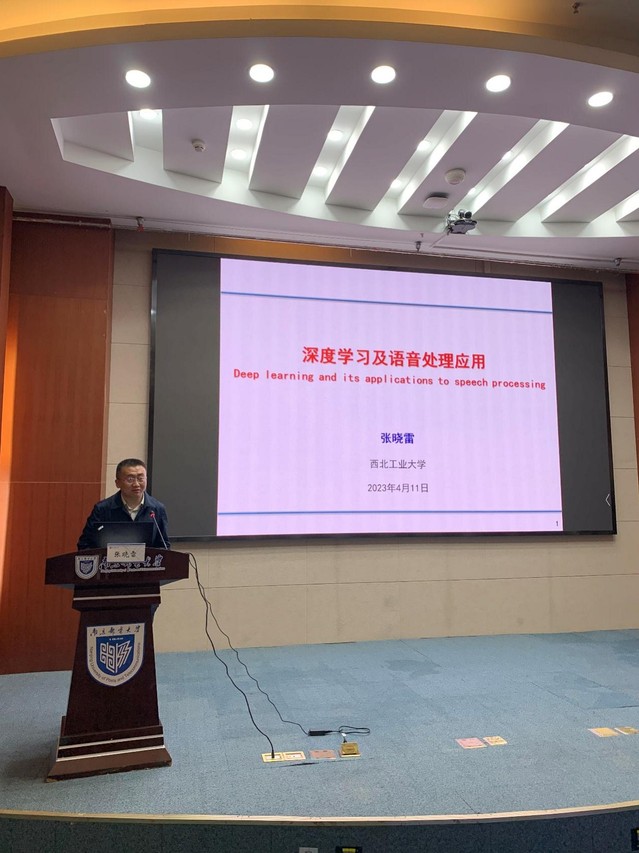 2023年4月11日,为丰富南京邮电大学办学81周年校庆月学术活动,特邀西北工业大学国家级人才张晓雷教授在中天报告厅为我院师生做了题为“深度学习及语音处理应用”学术报告,院长刘峰教授主持报告会,学院师生代表180余人参加报告会。