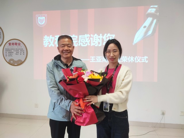 4月21日上午,我院为光荣退休的王亚南教授举办了一场简单又温馨的荣休仪式。我院院长刘峰主持仪式,学院党委书记彭洋、党委副书记副院长张力、副院长张刚要及教师近20人参加了仪式。