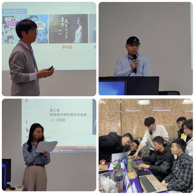 本次培训班结合项目培训模块和内容按照理论教学与技能实践操作相结合的方式实施。学院遴选10位专业素养好、授课水平高、经验丰富的中青年骨干教师参与该培训项目授课,保证了培训班的实施效果。培训班课程共6个模块48课时,涵盖新媒体认知、短视频内容的策划与创意、短视频的拍摄技巧与实施、短视频的剪辑与制作、自媒体平台的运营与管理和短视频综合运营等。
