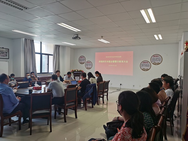 为了贯彻落实党的二十大精神,深入学习习近平总书记关于教育的重要论述特别是关于师德师风建设的重要指示批示精神,5月16日,学院党委在文科楼426会议室召开师德师风专题会暨警示教育大会。会议由学院党委书记彭洋主持,学院全体教职工参加会议。