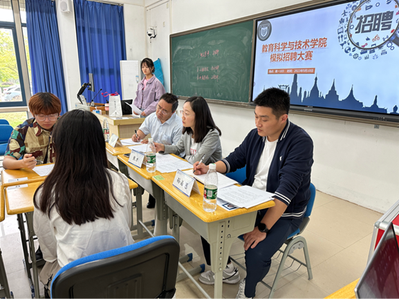 为鼓励准毕业班同学树立正确的就业观,提高职业能力素质,掌握应聘技能和技巧,教育科学与技术学院5月10日下午举行模拟招聘大赛,学院2021级全体研究生、2020级部分本科生参加了比赛。