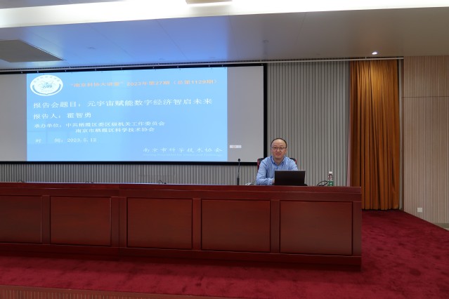 5月12日,由栖霞区科技局、科协、区级机关工委举办的2023年第27期“南京科协大讲堂”在仙林商务中心二楼会议室开讲,我院数字媒体技术系主任霍智勇教授作《元宇宙赋能数字经济智启未来》主题讲座,栖霞区150余名机关干部参加。