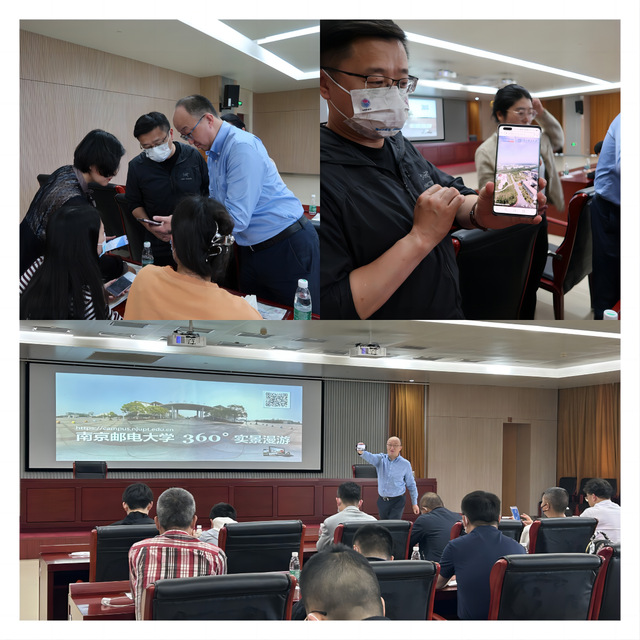 霍智勇教授以《元宇宙赋能数字经济智启未来》为题,从移动计算兴起、虚拟现实计算、沉浸体验计算、元宇宙兴起四个方面进行了详细的介绍。他指出,元宇宙构建了物理世界与数字世界的融合交互,是下一代互联网的必然形态。随着人工智能、虚拟现实、区块链等技术的不断进步,元宇宙必将成为数字经济与实体经济融合发展的新型载体,数字经济高质量发展的新引擎,赋能实体经济速发展。讲座中,参会人员体验了“南邮校园360度实景漫游”,观摩了工业元宇宙实际应用案例视频。