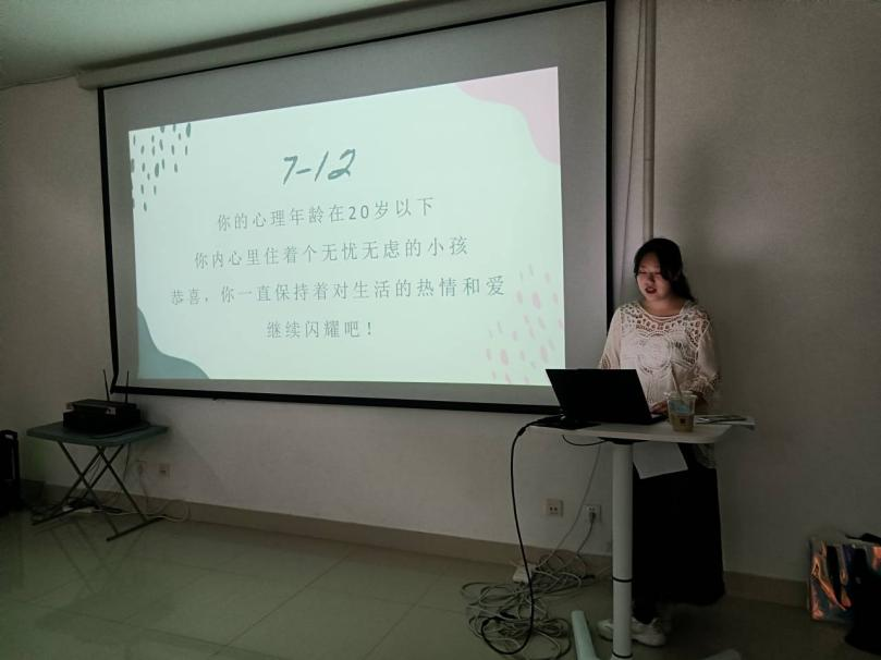 本次心理班会从三个方面展开,分别是“通过色彩了解自己”“色彩心理在视听语言中的运用”和“手绘多彩心灵”。活动伊始,主持人带领同学们做了罗夏墨迹心理测试,帮助大家了解自己真实的心理年龄和性格特征。