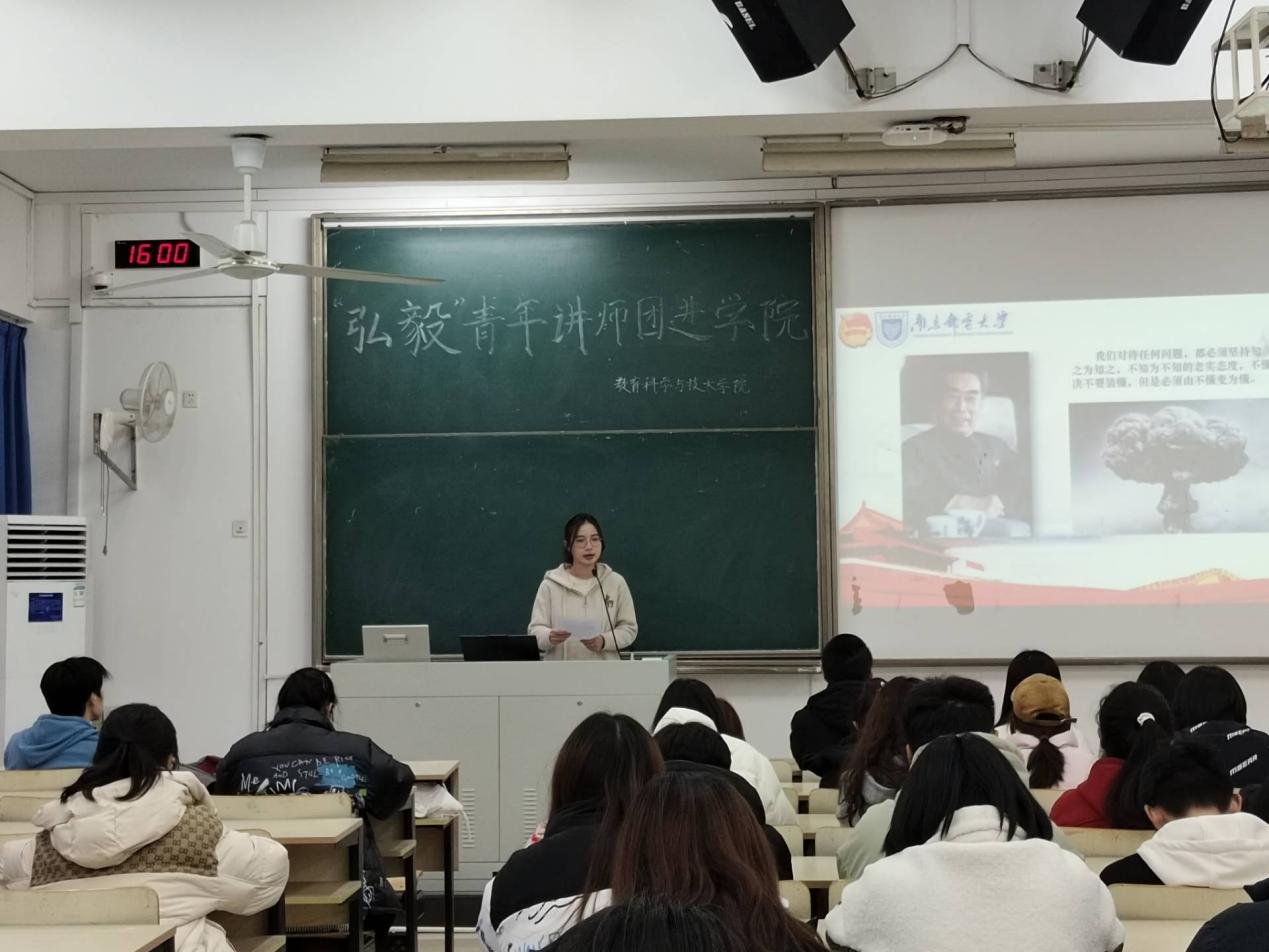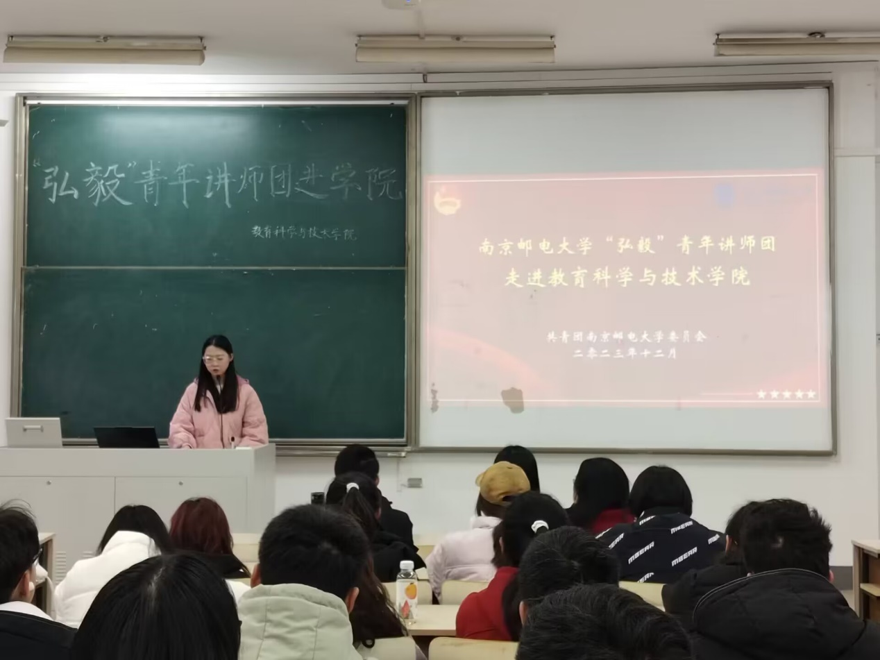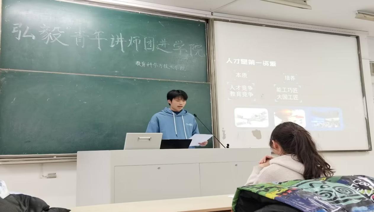 为深入学习贯彻习近平新时代中国特色社会主义思想和党的二十大精神,教育科学与技术学院于2023年12月12日下午邀请三位来自“弘毅”青年讲师团的同学为全体团员青年开展了专题宣讲课。宣讲主题分别为“坚持科技创新、勇立时代潮头”,“共同创造时代新文化、铸就中华文化新辉煌”,“卯足实干劲头、使命抗在肩”。