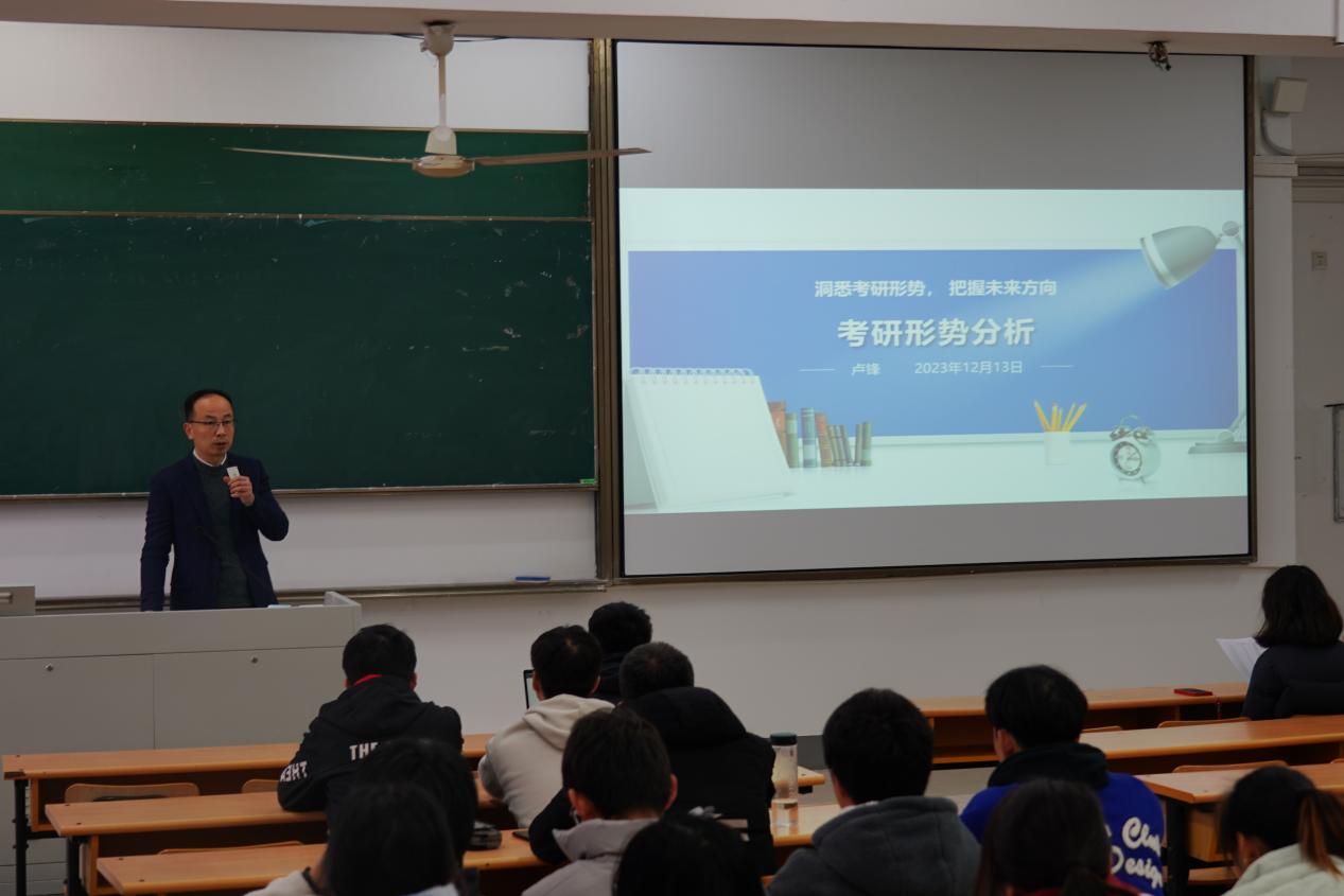 卢锋院长从“考研数据分析”“考研动因”和“择校与专业”三个方向为同学们进行了详细分析。卢院长点明了考研的重要性,阐述了考研后会有更高的层次、更阔的眼界、更好的平台,能够为同学们未来的职业选择和自身发展奠定更坚实的基础。他激励同学们要提前准备,做好规划,知己知彼,勇敢争先。