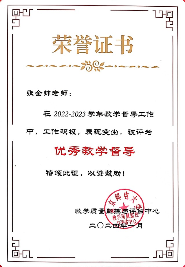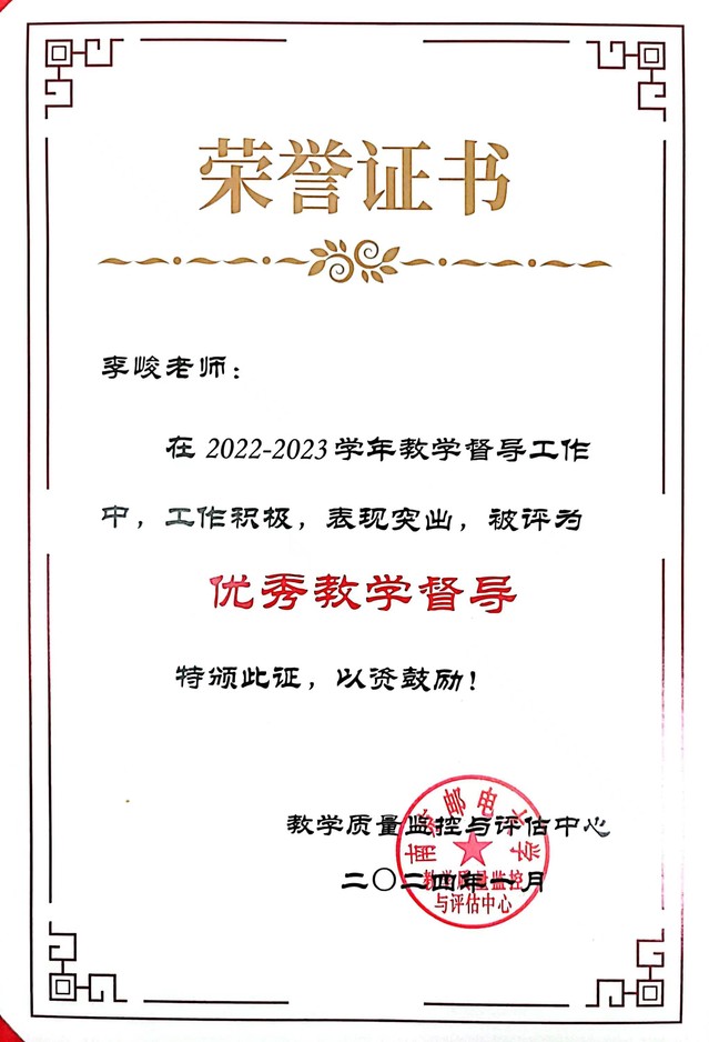 两位老师发挥自己在督教和督管方面的特长,凭借出色的督导工作,荣获学校2022-2023学年优秀教学督导称号,这是对他们工作的赞誉,也体现了我院在“以评促建、以评促强”的教育理念下,对提升本科教学质量、推动教育高质量发展的坚定决心。