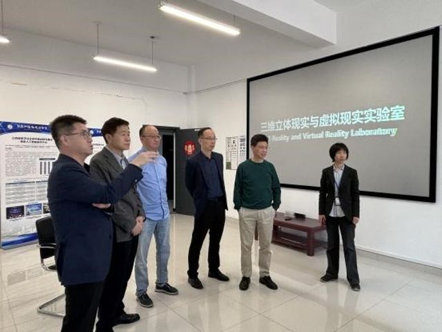 专家见面会结束后,专家组现场考察了学院专业实验室。数字媒体技术系主任霍智勇教授对实验室的建设进行深入细致的介绍,涵盖建设背景、组织架构、功能布局、建设成果等多个方面。陈明选教授对实验室前期基础与建设体系、思路方法给予充分的肯定。他表示,实验室高层次人才集聚,学科和平台优势十分明显,优秀科研成果不断涌现,这为未来深入研究三维立体现实与虚拟现实领域提供了坚实的基础和广阔的空间。