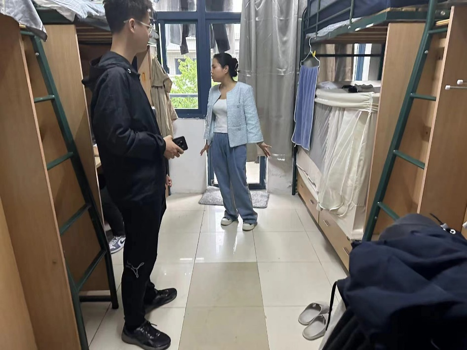为响应新时代大学生劳动教育要求,增强本科生的劳动意识,营造良好的宿舍环境。5月11日下午,教育科学与技术学院辅导员吴美萱对2021级、2023级本科生宿舍进行全面的检查并与本科生进行宿舍文化建设交流。