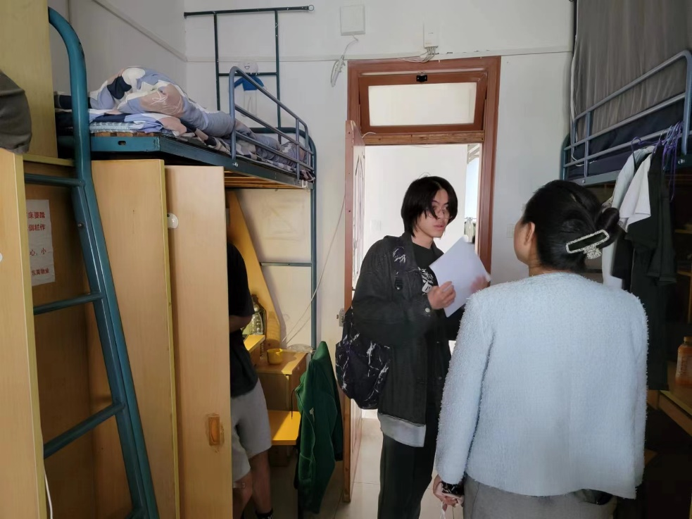 此外,辅导员吴美萱还与本科生们进行了深入交流,了解他们在宿舍学习和生活中遇到的问题和需求,鼓励他们分享宿舍文化建设创意,共同打造独特宿舍文化。她提出,宿舍作为休息场所,更是学习互动和个人进阶的平台,希望本科生们珍惜并利用好这一平台,通过劳动实践提升自我管理能力,加强沟通能力,增强社会责任感。