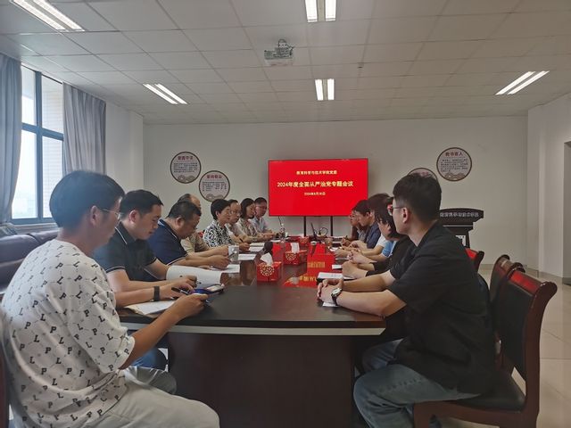 会上首先,彭书记传达学习了二十届中央纪委第三次全体会议和十四届省纪委第四次全体会议精神及学校2024年全面从严治党工作会议精神,同时通报了学院党委2023年度全面从严治党主体责任落实情况和2024年全面从严治党工作要点。彭书记强调,做好学院2024年全面从严治党工作,全院师生要坚持以习近平新时代中国特色社会主义思想为指导,深入学习党的二十大精神和习近平总书记关于党的自我革命的重要思想,结合党纪学习教育,贯彻全面从严治党战略方针,坚持不懈把全面从严治党向纵深推进。