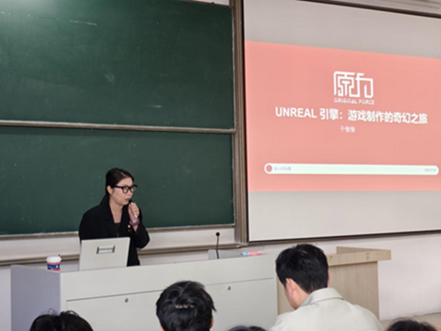 11月8日,江苏原力互动网络科技有限公司数字事业部视效总监于俊俊应邀为我院2023级本科生做“游戏行业技术趋势”专题讲座。讲座由数字媒体技术系主任霍智勇教授主持。