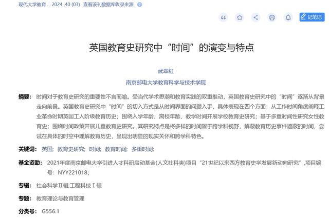我院教师武翠红在教育学CSSCI来源期刊《现代大学教育》上发表题为《英国教育史研究中 “时间” 的演变与特点》的论文。