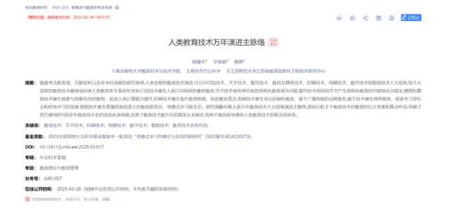 近日,我院陈耀华老师在CSSCI来源期刊《电化教育研究》上发表题为《人类教育技术万年演进主脉络》的论文。