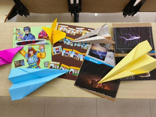 在作品展示与分享环节,2021级陈江毅同学以“喜悦的翅膀”为主题,用纸飞机串联起青春记忆与生活感悟。他提到:“拼贴让我重新拾起时光碎片,每一架纸飞机都承载着成长的喜悦。”大一新生则以渐变彩纸创作立体蝴蝶拼贴画,蝶翼点缀诗句与星月手绘,象征大学生活中破茧成蝶的蜕变过程。此外,赛伊代同学的作品《文化叙事》融合漫画剪报、传统小说元素与抽象线条,以视觉语言展现多元文化的碰撞与共生,成为全场焦点。她表示:“拼贴打破表达壁垒,让我用色彩与形状传递对生活的理解。”