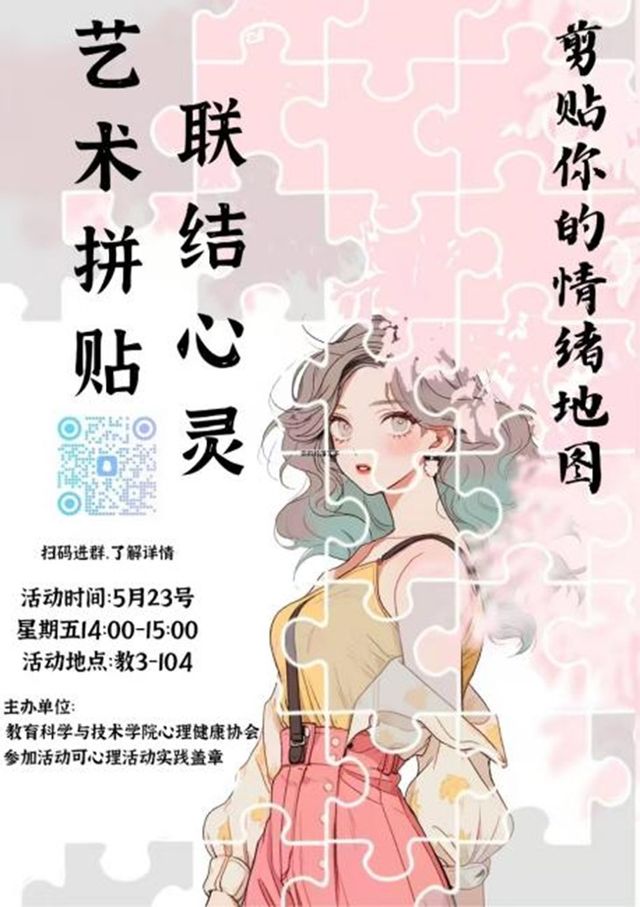 为深化美育与心理健康教育的融合,引导学生通过艺术创作释放压力、探索自我,南京k1体育于5月23日下午在仙林校区教3-104举办了“拼贴心灵图景”主题心理健康教育活动。活动通过音乐疗愈、创意互动与拼贴艺术创作等形式,为百余名学生打造了一场沉浸式的心灵疗愈之旅,助力学生以艺术为媒介实现情绪表达与自我成长。
