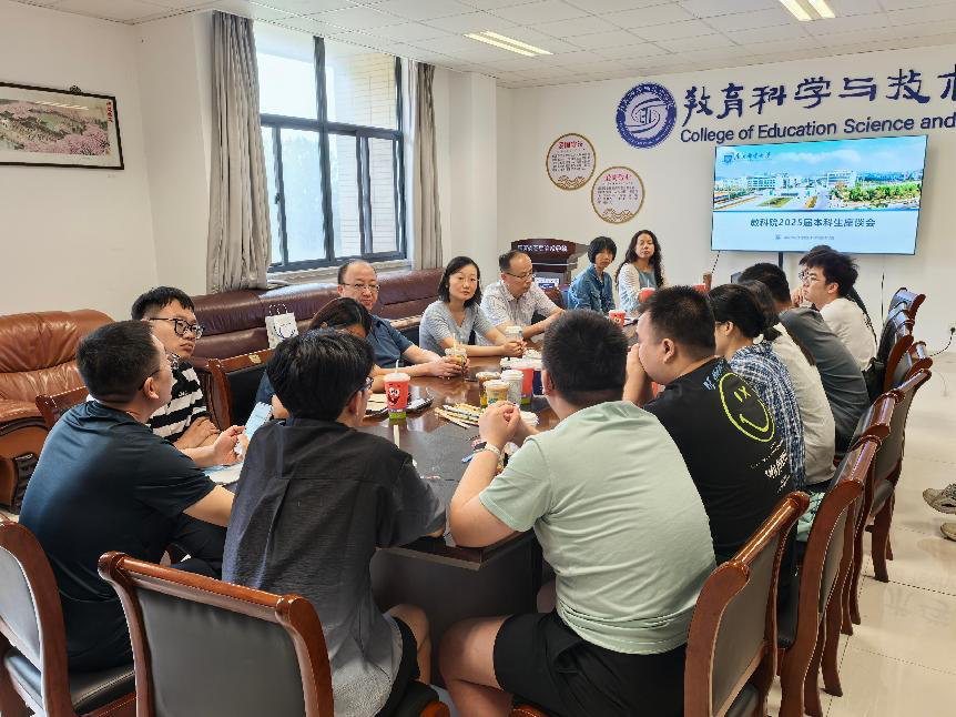 6月10日中午,教育科学与技术学院于文科楼426会议室召开2025届本科毕业生座谈会,全体院领导、辅导员及教师、班主任代表和2021级本科生毕业代表共同出席,座谈会由本科生毕业班辅导员吴美萱主持。